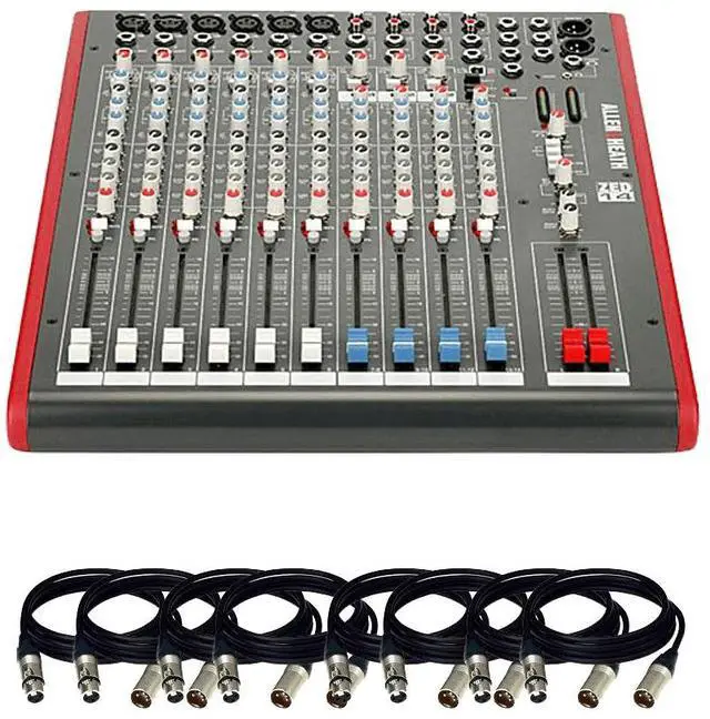 Allen & Heath ZED14 14-Channel Recording and Live Sound Mixer with USB Connection + (8) XLR to XLR Cables 15FT Ea