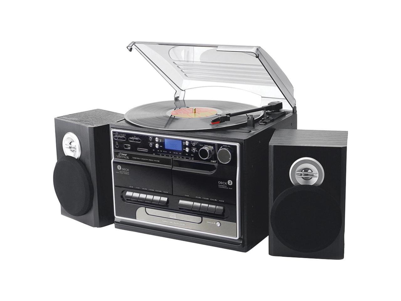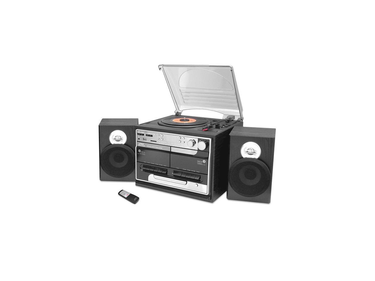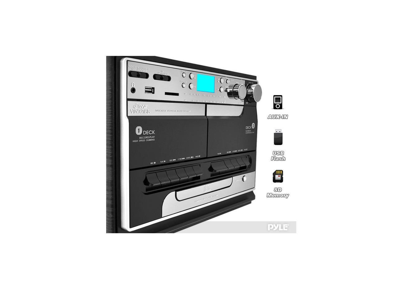 PyleHome - Retro Vintage Bluetooth Wireless Streaming Turntable & Speaker System with Vinyl to USB Recording, Dual Cassette Decks, CD Player, AM/FM Radio, AUX In, Line Out, USB & SD Card Readers