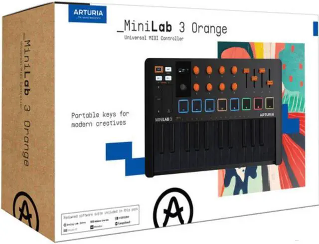 Arturia MiniLab 3 Orange Compact MIDI Keyboard and Pad Controller (Special Edition Orange and Black)