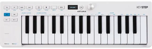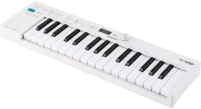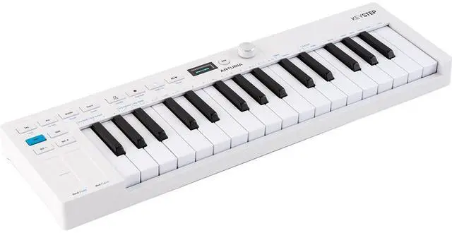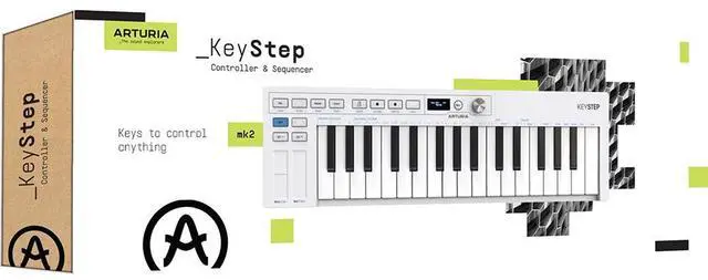 Compact and expressive, the Arturia Keystep mk2 is a portable USB-C MIDI controller keyboard and sequencer sporting 32 slim keys with both velocity sensitivity and aftertouch. Loaded with deep sequencing capacityincluding 64 steps with eight-note polyphony, and an arpeggiator with nine patterns and 16 modesthis keyboard is a lightweight yet powerful idea machine.