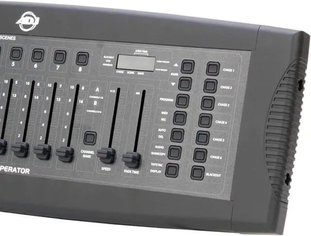 - 8 individual faders provide easy programmability for intelligent lighting or dimmer packs