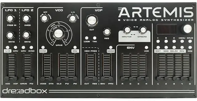 Create outstanding synthesizer tones with the Dreadbox Artemis, a 6-voice analog polyphonic synthesizer that incorporates classic Dreadbox DNA to usher in a new dimension of polyphonic goodness to the Dreadbox family of analog synths.