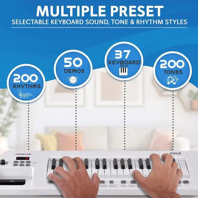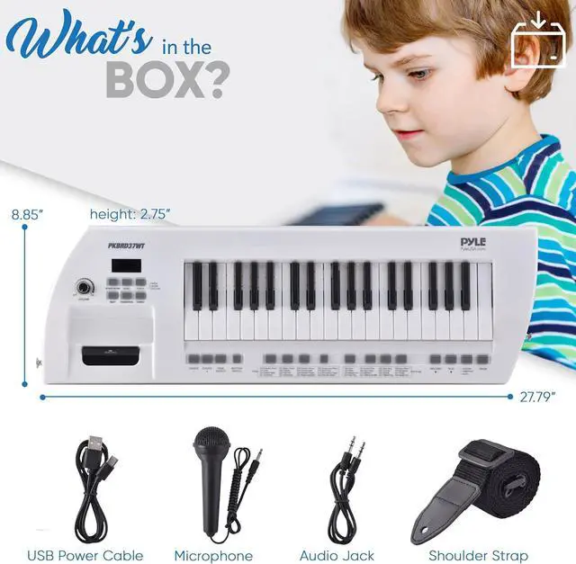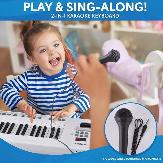37 KEYBOARD KEYS: This Portable Electronic Piano Keyboard comes with a full set of 37 keyboard keys as well as built-in full-range stereo speakers and a hooked handheld microphone for easy electronic plug-in operation