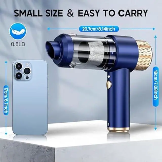 16000PA POWERFUL SUCTION CORDLESS VACUUM CLEANERThis portable cordless car vacuum cleaner has a suction force of 16000Pa and a high speed of 84000RPM to provide a powerful cleaning power. This suction is enough to deal with the car dust, pet hair, food scraps and other common stains. The rapid heat dissipation function of the cordless vacuum cleaner can prevent the motor from overheating and extend the service life. With its powerful suction, efficient cleaning capability and portability, this vacuum cleaner is ideal for everyday home use and portable cleaning needs