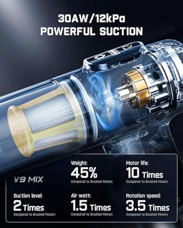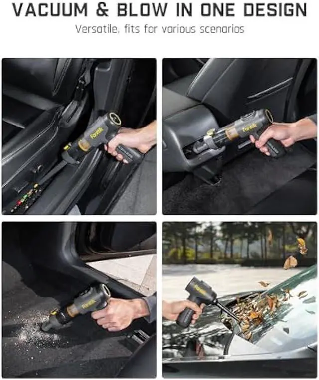 4-in-1 Multifunctional Car Vacuum: With a variety of accessories, our car vacuum cleaner can do the job of vacuuming, blowing, inflating, pumping perfectly. Slim V9 Mix mini car vacuum redefines car cleaning, from car seats, grooves