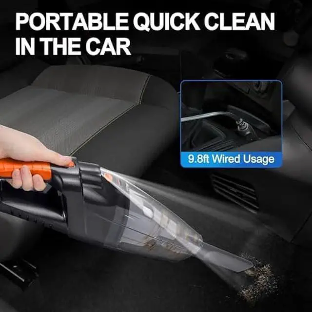 Portable Vacuum for Car: This vacuum for car 80w high-power, rechargeable is designed to tackle tough cleaning tasks with ease. There's also a 9.8 footer cigarette lighter line, which can meet the requirements of cleaning your entire vehicle.