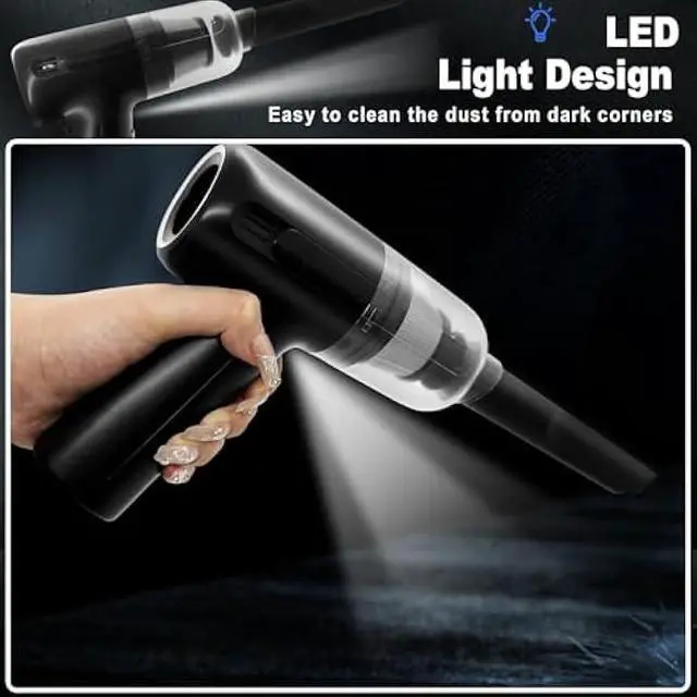 UNIQUE LED LIGHT DESIGNThe built-in bright LED light can provide a good view when you are cleaning corners, the bottom of car seats and other hard-to-see places. At night, the LED light helps you clean quickly in the dark, bringing a lot of convenience to the cleaning work.
