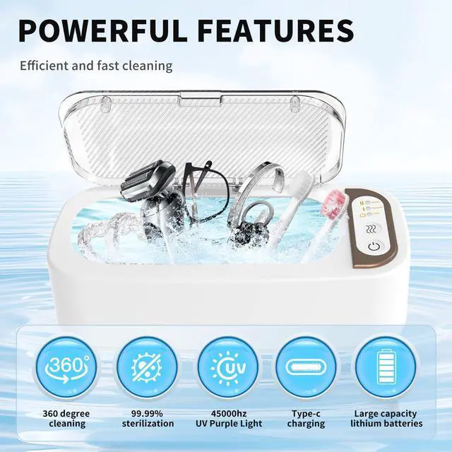 STRONG CLEANING POWER - The Ultrasonic Cleaner delivers 360° cleaning by reaching into gaps and grooves, For heavily stained items, double-click for deep cleaning and add a cleaning solution for better results.