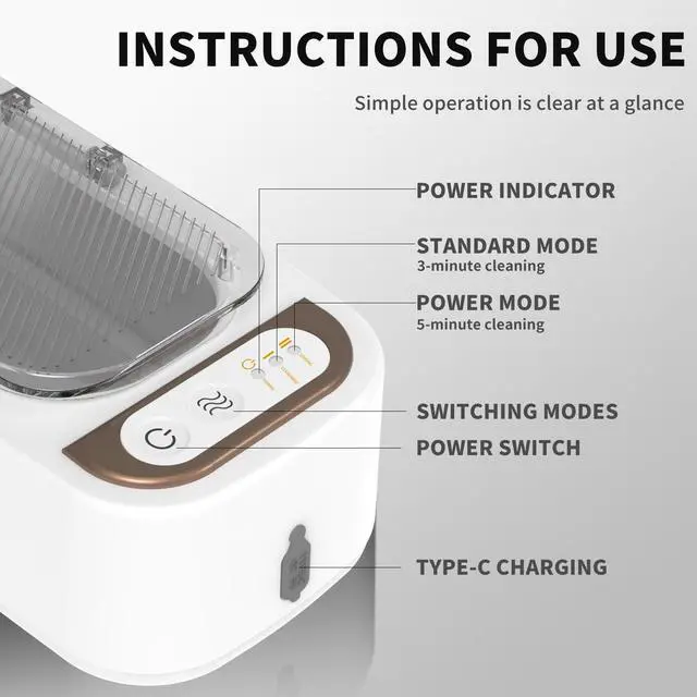 2 TIME MODES - This jewelry cleaner machine offers 2 different time modes, so you can freely choose the cleaning time you want with the button:3/5min.