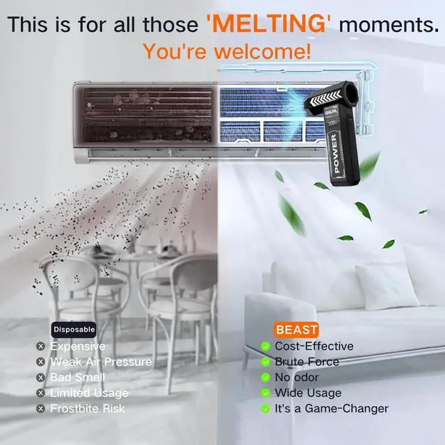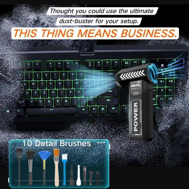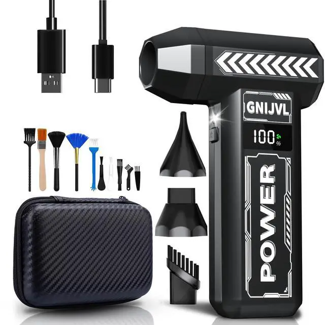 Ultra-High Power & Cordless Convenience Equipped with a powerful 150,000 RPM motor and turbo fan technology, this electric compressed air duster delivers a super-strong air stream3X more forceful than traditional canned air. No cords, no chemicals, no freezing residue. Perfect as a cordless mini blower for deep cleaning keyboards, computers, car interiors, cameras, and delicate electronics.