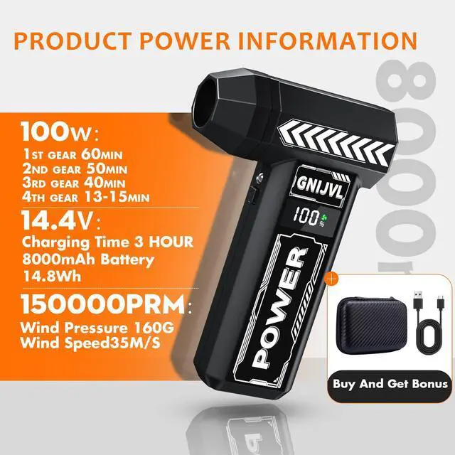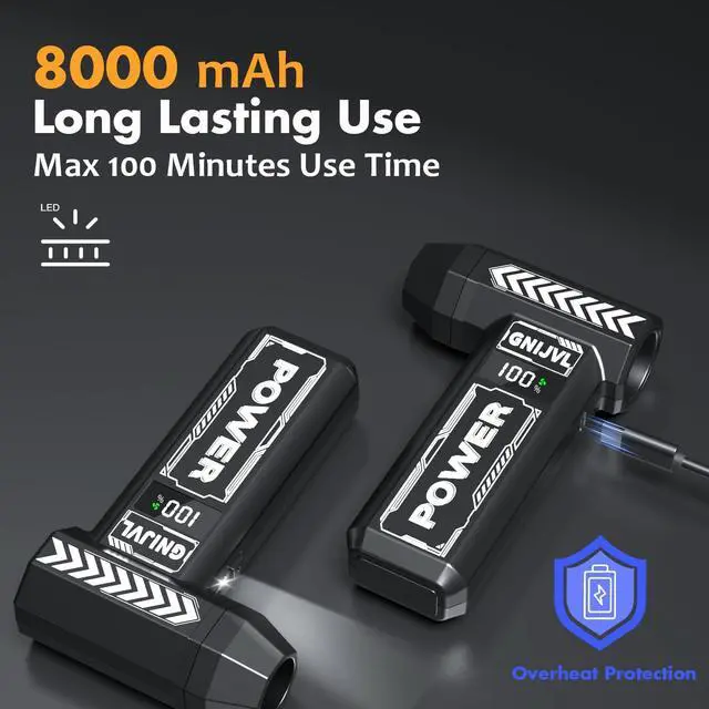 Long-Lasting Battery & Quick Recharge Features a rechargeable 8000mAh lithium battery providing up to 60 minutes of continuous runtime on a single charge. The USB-C fast charging ensures full power in just 2 hours. No more wasted cansthis electric air duster is your eco-friendly, cost-effective solution for repeated use.