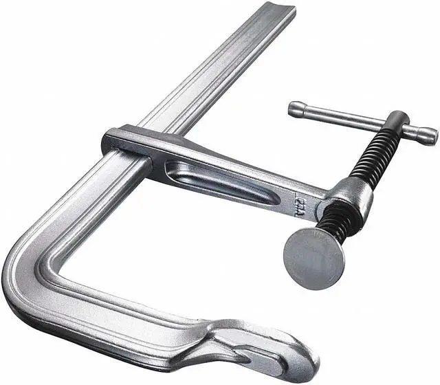 The Bessey 660-S8 8 in Bar Clamp is a professional quality tool that will handle the tough jobs. The forged steel handle gives you a solid grip and swivel pad allows for versatile use. Designed to provide you with 726 lb of clamping pressure, this F-style sliding arm bar clamp has an 8 in max jaw opening. The 4 in throat depth means it can be used with a variety of objects up to 7/8 x 11/32" nominal rail size. It features replaceable standard pads, which are swivel type and can be removed easily without tools.