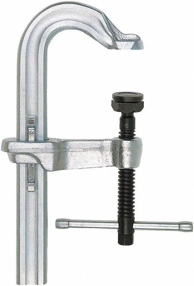 Sliding Arm Bar Clamp, Extra High Pressure, Opening (In. ) 14 in, Throat Depth (In. ) 4 in, Load Capacity (Lb. ) 8, 500, Nominal Rail Size (In. ) 1-1/2 x 3/4, Nominal Clamping Pressure 8, 500, Spindle Dia. (In. ) 0.85, Pad Type Swivel MorPad, Swivel Type 35 Degrees Tilt, Replaceable, Swivel Pad (In. ) 1-1/2, Screw Size (In. ) 0.85, Max. Jaw Opening (In. ) 14 in, Clamp Face (In. ) 1-3/4 x 2-3/4, Bar Thickness (In.