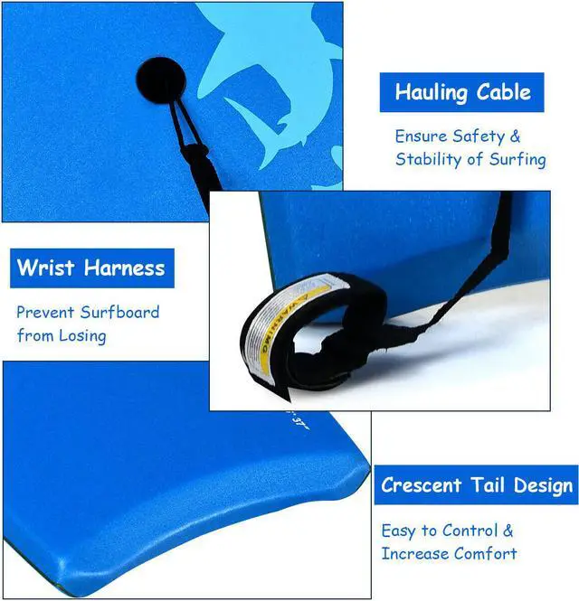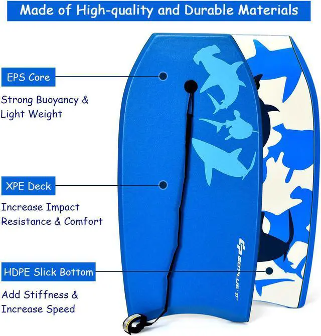 Our bodyboard gives you a cool and wonderful experience of riding a wave on a hot summer day. Made of high-quality EPS core, XPE deck and HDPE slick bottom, it has strong buoyancy and load-bearing capacity. Moreover, it has good impact resistance and weather resistance, making it difficult to deform and fade. The crescent tail has great flexibility and comfort to suit your different riding styles. The most important thing is that it has a leash and a wristband that protects you from being washed away by the waves. The light weight is easy to carry and transport, so you can take it to the pool, water park, river and sea. Our bodyboard is your best choice, don't hesitate to buy it!