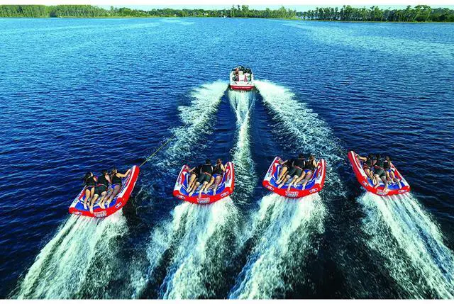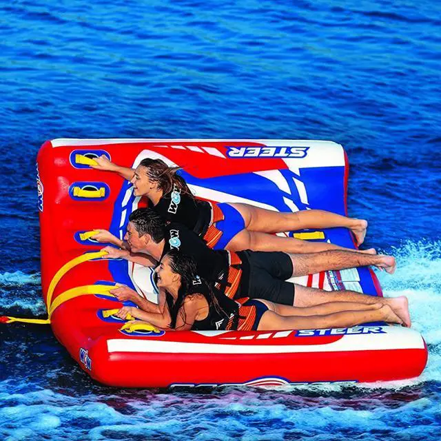This U-shaped tube gives you allll the power to control your ride. Weave in and out of the wake. Lean a little to the right while the boat goes straight. Time your jump juuust right so you get maximum liftoff. Controlling the Power Steer is so easy, you could almost do it with your eyes shut (but please don't). Comfy foam handles with EVA guards mean you won't have to white-knuckle to get a good grip. And HI-VIS graphics mean you'll be one of the coolest crews on the water. There's enough room for three so feel free to bring a friend or two!