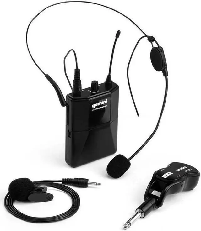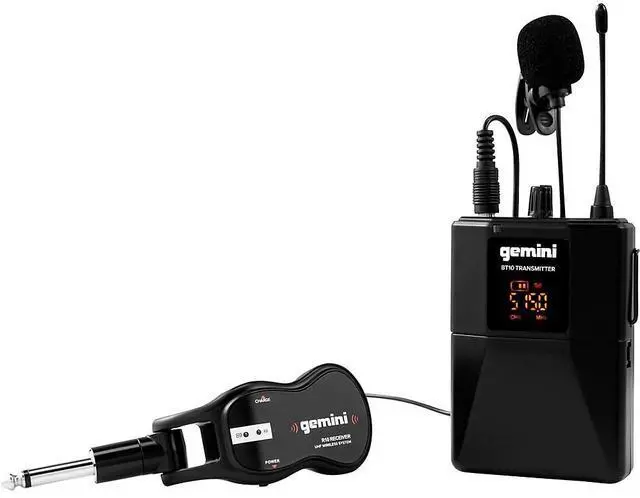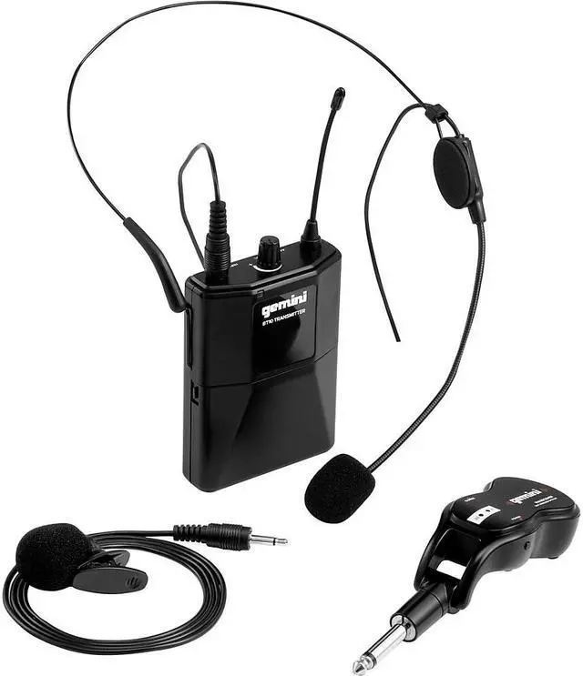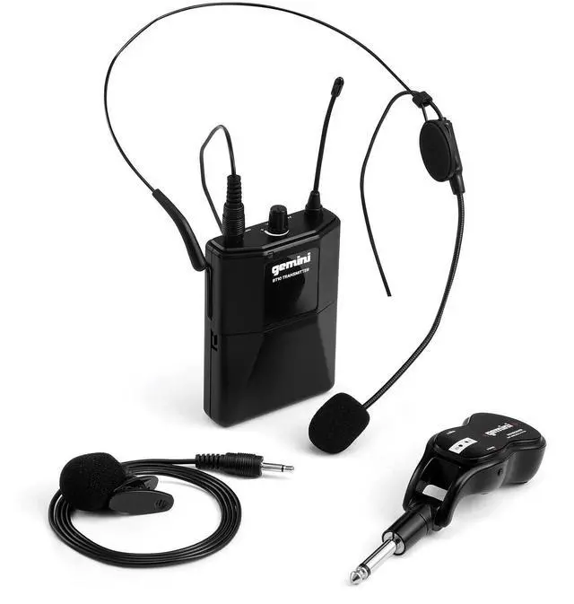 Gemini Sound GMU-HSL100 Professional Wireless Headset Lavalier Rechargeable Battery Powered Microphone with Instant Plug & Play Connectivity for DJ's, Singers, Public Speakers with Body Pack
