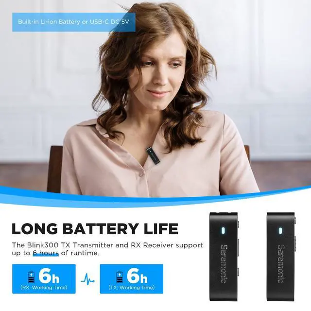 Built-in lithium battery, TX\RX about 6 hours of battery life, fully charged within 2 hours;