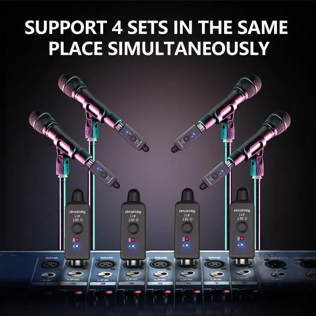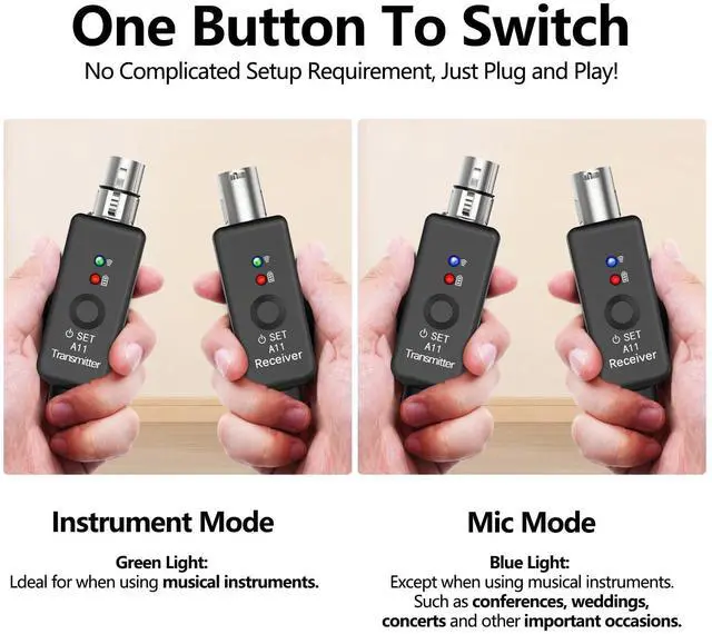 Come with XLR to 6.35mm adapter, it can be used as wireless guitar system! This set cover the use of microphone & guitar instrument!