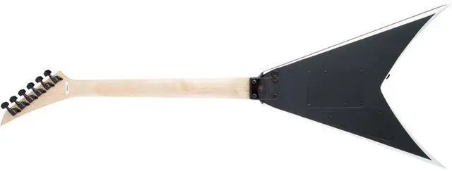 This results in superior tuning stability and sustain, even during the most aggressive performances. Standard strap buttons and sealed die-cast tuners are included for added convenience and ease of use. The King V JS32 is swift, deadly, and visually striking with its all-black hardware. Its unique V-style body shape, gloss black and white finish with white bevels, make it a standout choice for any electric guitar enthusiast.