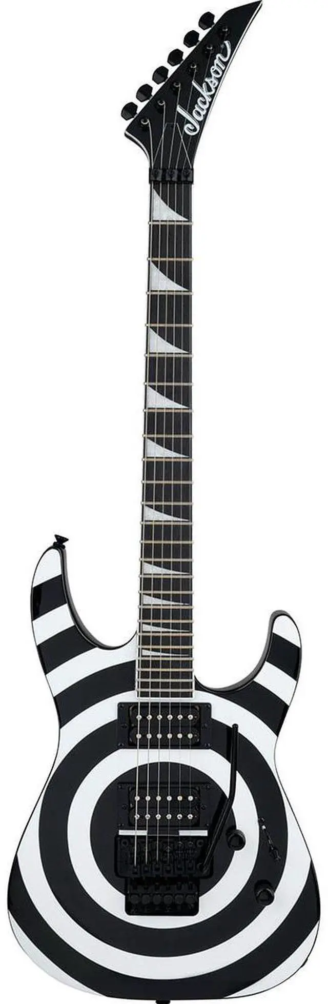 This design ensures that players can execute complex solos and rhythm patterns without fretting out. Equipped with active Jackson covered high-output humbucking pickups, this guitar delivers an expansive voice with a crunchy, full-bodied tone. These pickups are meticulously voiced to provide maximum overdrive and sustain, making it perfect for brazen lead work and assertive rhythm runs. The tone is fully customizable with a three-way pickup blade switch, along with single volume and tone controls, offering a wide range of sonic possibilities. The Floyd Rose Special double-locking tremolo bridge system offers superior string stability and dynamic tremolo action, allowing for expressive pitch modulation and dive-bomb effects.
