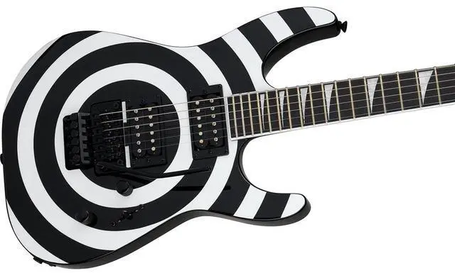 It features an ergonomically curved nyatoh body, providing a comfortable playing experience, and a through-body maple neck with graphite reinforcement, ensuring rock-solid stability. The tilt-back scarf joint headstock enhances tension behind the nut, eliminating the need for string trees or retainer bars. The Jackson X Series Soloist SLX DX Graphic Srs Electric Guitar in Bullseye Graphic is designed for musicians who demand precision and durability. The guitar boasts a 12-16" compound radius bound laurel fingerboard with 24 jumbo frets, allowing for effortless chording near the nut and smooth, low-action bends near the neck joint.