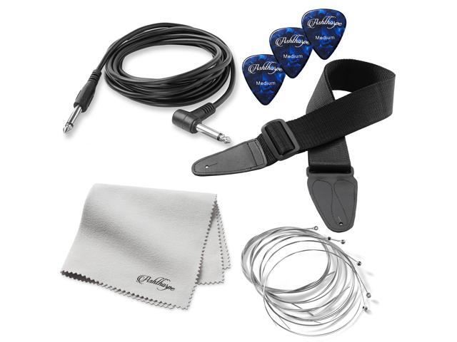 - Includes 15mm Padded Backpack-Style Fabric Gig Bag, Shoulder Strap, Extra Strings, Polishing Cloth, Cable, and (3) Celluloid Picks