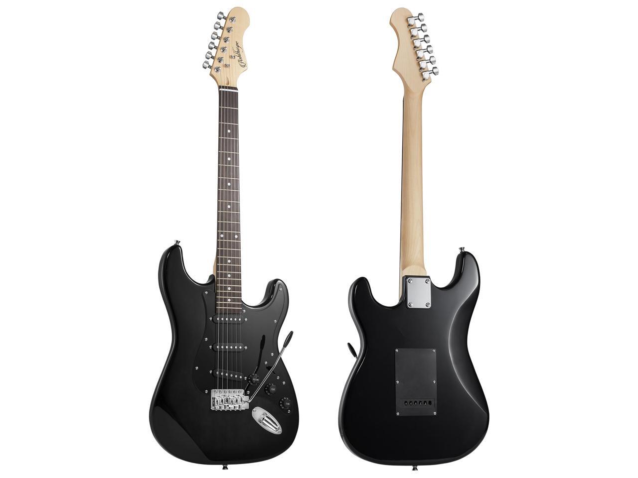 Ashthorpe 39-Inch Electric Guitar (Black-Black), Full-Size Guitar Kit with Padded Gig Bag, Tremolo Bar, Strap, Strings, Cable, Cloth, Picks