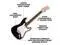 Designed by _Mega Brand in California and an icon of rock & roll, the Debut Series Stratocaster features a slim "C"-shaped neck profile and a thin, lightweight body for a comfortable playing feel while three single-coil pickups with 5-way switching offer a wide variety of classic Strat tones. Further details of this model include a tremolo bridge with removable arm for exciting string-bending effects, sealed-gear tuning machines for smooth, accurate tuning action and durable chrome hardware for a premium look.