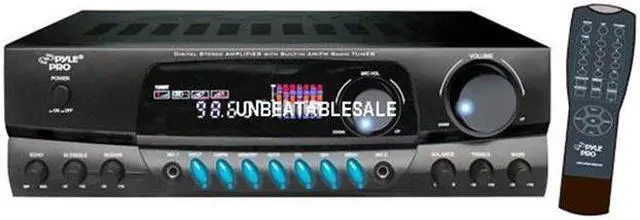 Power main: 50W x 2 @ 8 ohm 100W x 2 @ 4 ohm Stereo Amplifier With A/B Speaker Output AM/FM Radio With Digital Display Screen Auto Scan Memory Radio Station PREVIOUS/NEXT control 50 Radio Station Pre-Set Memory Volume/Balance/TREBLE/BASS Gain Control For Main Channel VOLUME/BASS/TREBLE/ECHO Control For Microphone Two Microphone Input JackS Three RCA Input Source 110/220V power switch