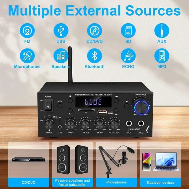 | Special Feature | Dual Input Ports,Bluetooth,AUX, USB, SD |