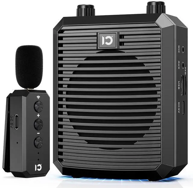 Use the "+" button on the speaker and the lavalier microphone to increase the volume.
