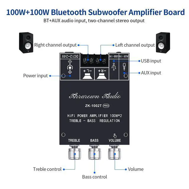 ZK-1002T 200w 2.0 Channel Bluetooth 5.0 Mini Audio Amplifier Board