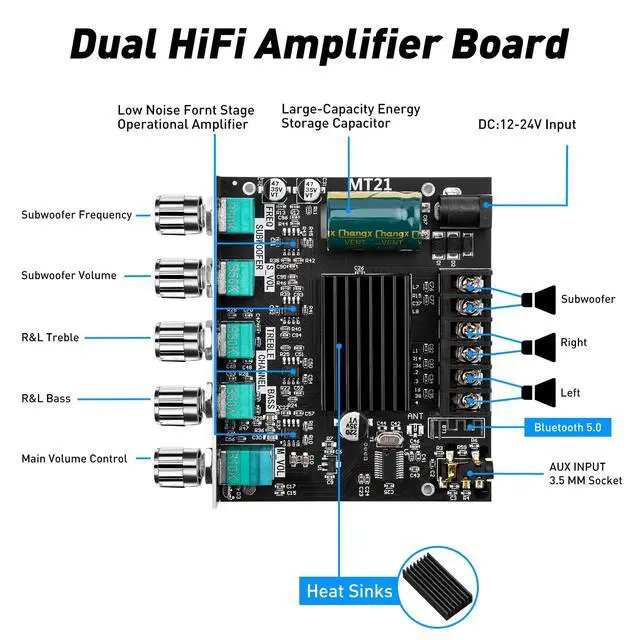 This Bluetooth power amplifier board uses a HiFi high-fidelity power amplifier chips, and the power output of a single chip can reach 50W.