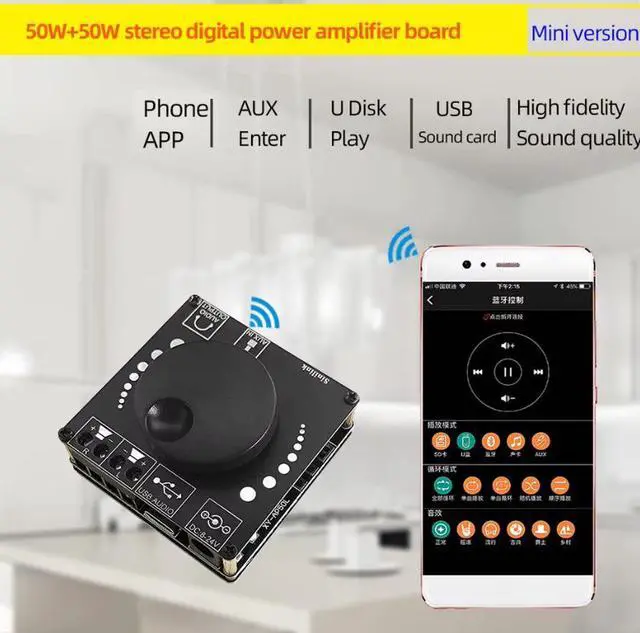 XY-AP50L 40W50W*2 Stereo Bluetooth Digital Power Amplifier Board 12V/24V2.0 Dual Channel Knob Volume Adjustment Switch