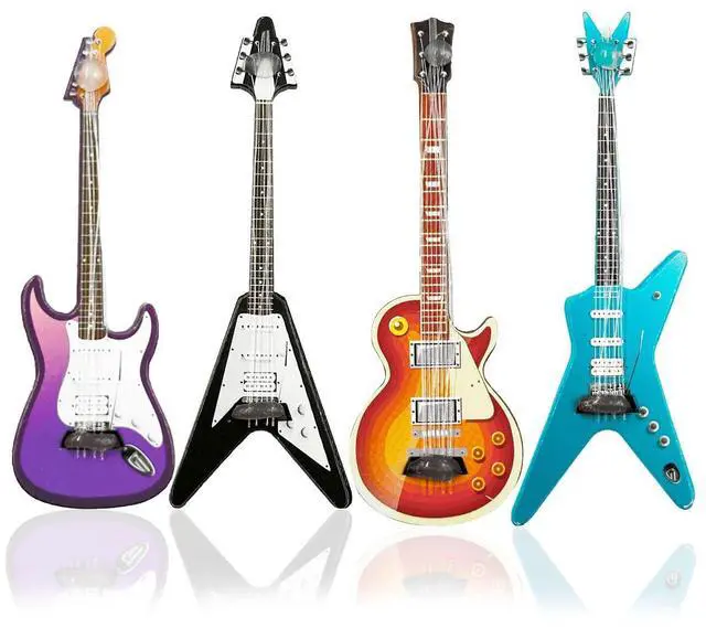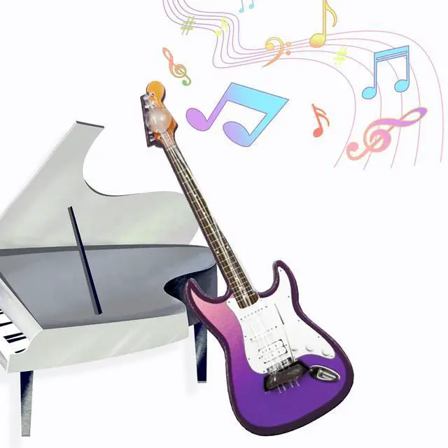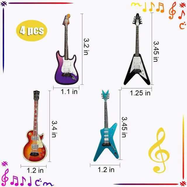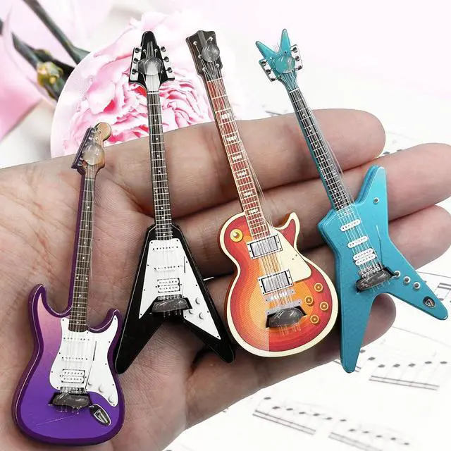 Miniature Guitar Miniature Bass Model - 4Pcs 1:12 Mini Musical Instrument Bass Guitar Wooden Guitar Model Display Ornaments for Mini Music Room Accessories Model Home Decoration