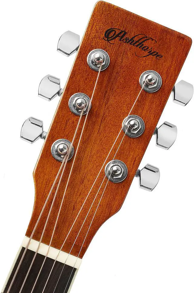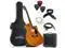 This guitar bundle from Ashthorpe features an acoustic-electric guitar (can be played "Acoustic" without an amplifier, or "Electric" with the included 10-Watt amplifier). The guitar body is finely crafted from superior (A-grade) tonewoods; Spruce on top for its fantastic resilient and musical qualities, and Basswood (similar to Alder) is used for the back and sides for optimum tonal response and warmth. The underside of the soundboard is X-braced for superb structural integrity. The neck is constructed from marine grade Okoume which is extremely strong and balanced. The body is a full size (41") cutaway design, meaning the guitar body near the neck is cut back to allow easier access to the upper frets, making for more comfortable play.