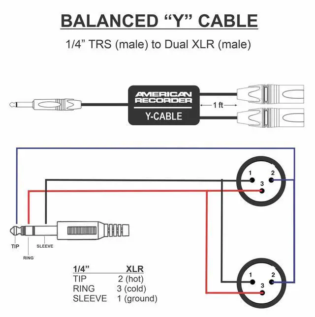 • AMERICAN RECORDER PRO Series Y Cable - Balanced 1/4" TRS Male to Dual XLR Male