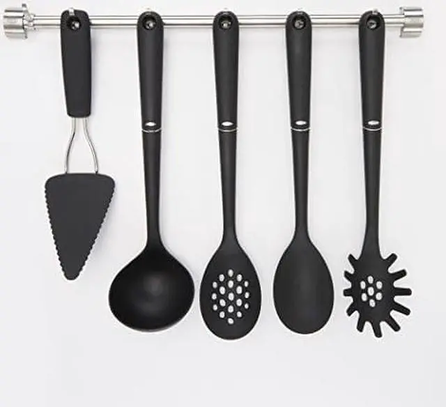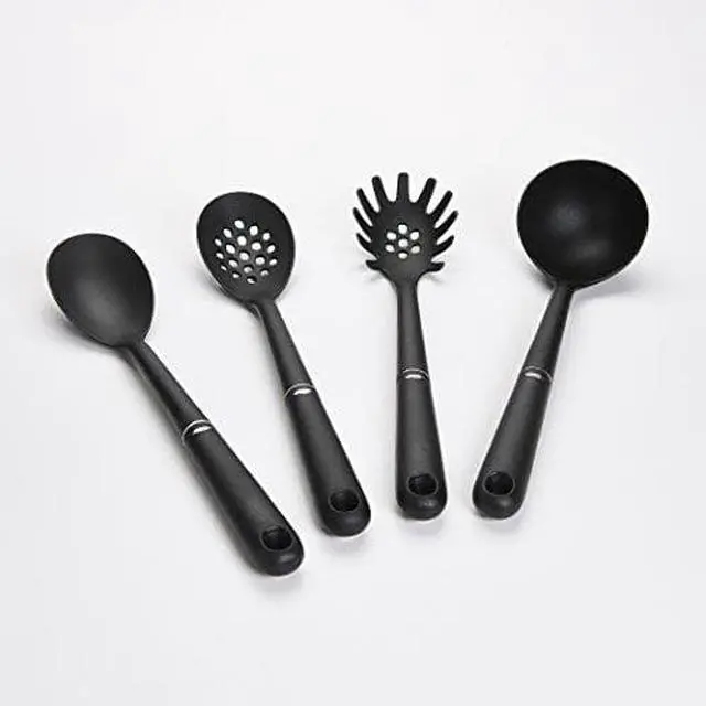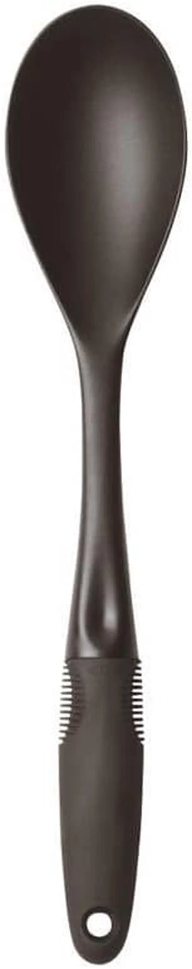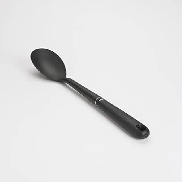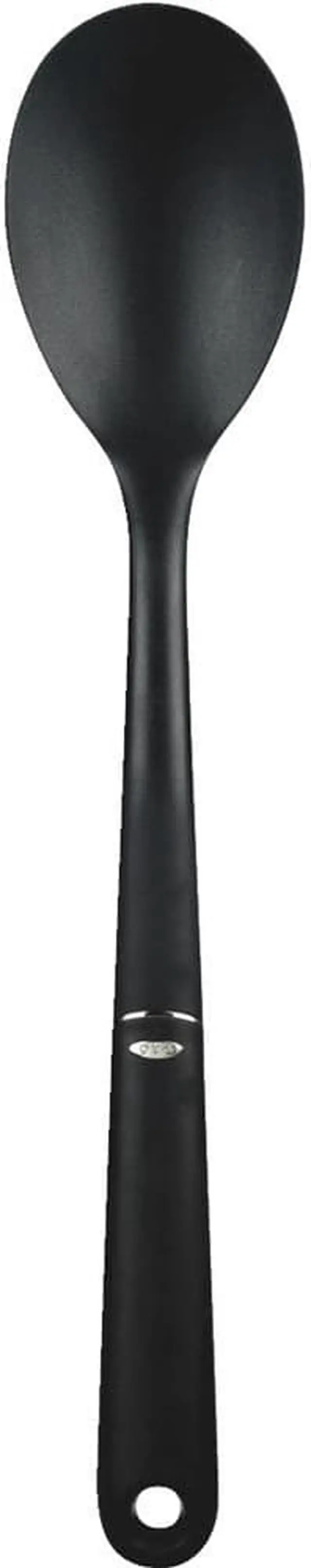 The OXO Nylon Spoon is perfect for stirring soups, sauces, stews and chili. Sturdy nylon is safe for non-stick cookware and heat resistant to 400 degrees, soft handles provide a comfortable grip, and metal accents make these Nylon Tools pretty enough to take to the table for serving.
