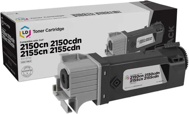 Save and print even more when you shop with LD Products! This offer includes 1compatible replacements for Dell 331-0719 / MY5TJ black toner cartridge. Why pay more for expensive brand name Dell toner? Compatible with Dell Color Laser 2150cdn, 2150cn, and Dell Multi-Function2155cdn, 2155cn printers. Please note, retail packaging may vary, and thesecartridges will only work with printers purchased within the United Statesand Canada. The use of replacement ink and toner cartridges and supplies doesnot void your printer's warranty. Professionally manufactured by LD Products.