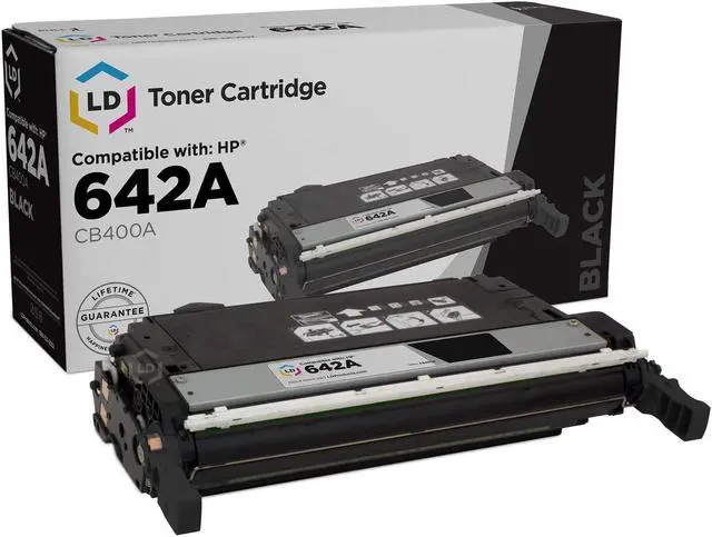 This is a replacement cartridge for the Hewlett Packard CB400A (642A) black laser toner cartridge which is manufactured by LD and is guaranteed to perform with your HP printer. It replaces the original HP CB400A toner cartridge. LD remanufactured replacement CB400A laser toner cartridges are specially engineered to meet the highest standards of quality and reliability you can expect from LD. Our toners have exceptional yields that meet or exceed the OEM (Original Equipment Manufacturer) page yield for the CB400A. Our remanufactured HP 642A contains up to 85% new parts including wiper blades, OPC drums, an electronic smart chip for accurate toner level readout and other internal components.