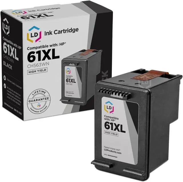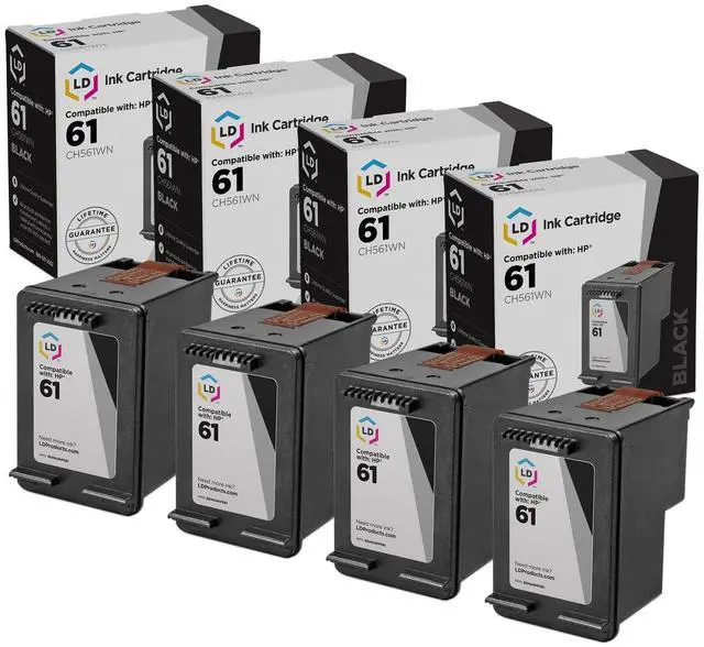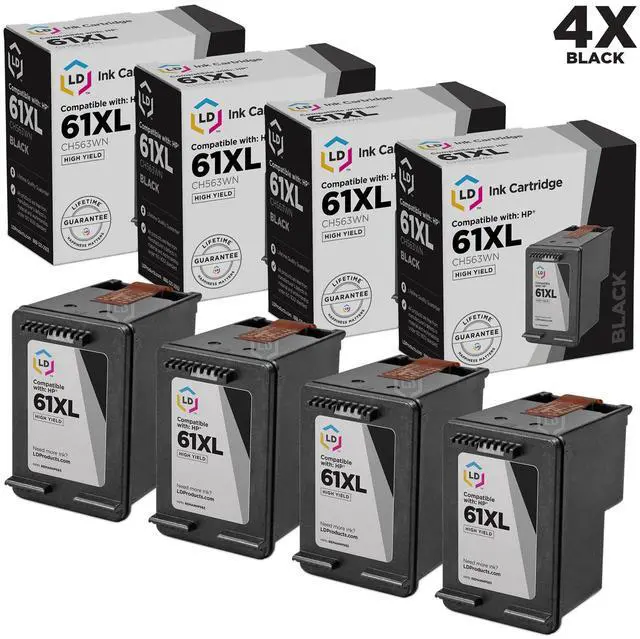 Save even more with our 4 pack of professionally remanufactured HP 61XL (CH563WN) High Yield Black Inkjet cartridges. This set includes 2 HP CH563WN (HP 61XL) high yield inkjet cartridges. These LD remanufactured ink cartridges have been thoroughly cleaned along with the printhead nozzles. Following the cleaning process, we refilled the cartridge with a professionally manufactured pigment-based ink formula for archival print life and color stability. This ink formula is specially designed to produce vibrant and long-lasting prints comparable to HP. After carefully inspecting the shell for leakage and monitoring the electrical circuitry for efficiency, we put the cartridge through a final print test to be certain it is worth of our 100% money-back guarantee.