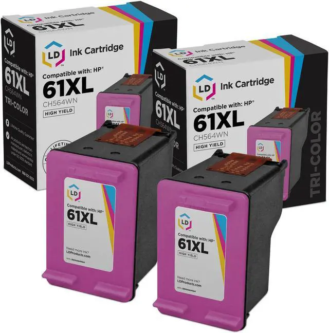 Save even more with our 2 pack of professionally remanufactured HP 61XL (CC564WN) High Yield Color Inkjet cartridges. This set includes 2 HP CC564WN (HP 61XL) high yield color inkjet cartridges. These LD Products remanufactured ink cartridges have been thoroughly cleaned along with the printhead nozzles. Following the cleaning process, we refilled the cartridge with a professionally manufactured pigment-based ink formula for archival print life and color stability. This ink formula is specially designed to produce vibrant and long-lasting prints comparable to HP. After carefully inspecting the shell for leakage and monitoring the electrical circuitry for efficiency, we put the cartridge through a final print test to be certain it is ready to perform.