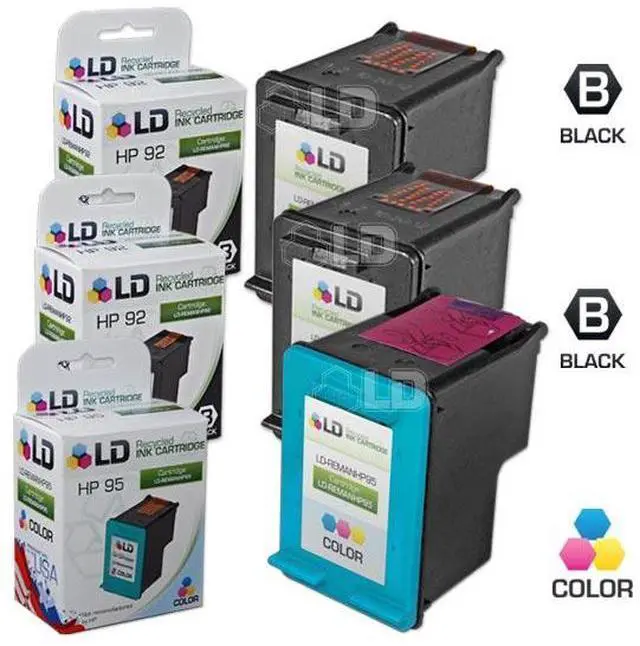 Save even more with our 3 pack remanufactured HP 92 & 95 ink cartridges: This set of HP 92 & 95 inkjet cartridges includes 2 black C9362WN ink cartridges, and 1 tri-color C8766WN inkjet cartridge. These LD remanufactured ink cartridges have been thoroughly cleaned along with the printhead nozzles. Following the cleaning process, we refilled the cartridge with a professionally manufactured pigment-based ink formula for archival print life and color stability. This ink formula is specially designed to produce vibrant and long-lasting prints comparable to HP. After carefully inspecting the shell for leakage and monitoring the electrical circuitry for efficiency, we put the cartridge through a final print test to be certain it is worth of our 100% money-back guarantee. Our remanufactured ink cartridges are not remanufactured by HP. So stock up now and save even more! This combo set works with the following printers: HP OfficeJet 6310, OfficeJet 6310v, and OfficeJet 6310xi. We are the exclusive reseller of LD Products brand of high quality printing supplies on Newegg.