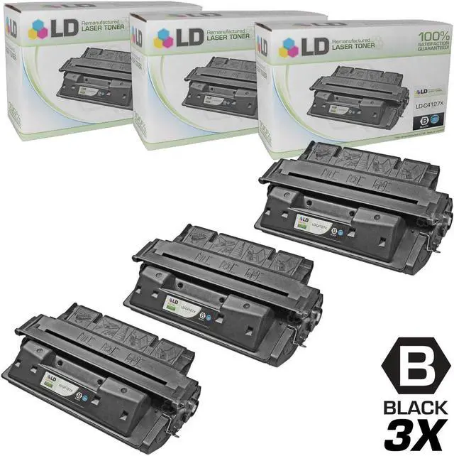 Save even more with our set of 3 remanufactured high yield laser toner cartridges. This set includes 3 C4127X high yield black laser toner cartridges. Why pay more for brand name HP 27X toner cartridges when our remanufactured printer supplies deliver excellent quality results for a fraction of the price? Our remanufactured ink cartridges are not remanufactured by HP. So stock up now and save even more! This combo set works with the following
