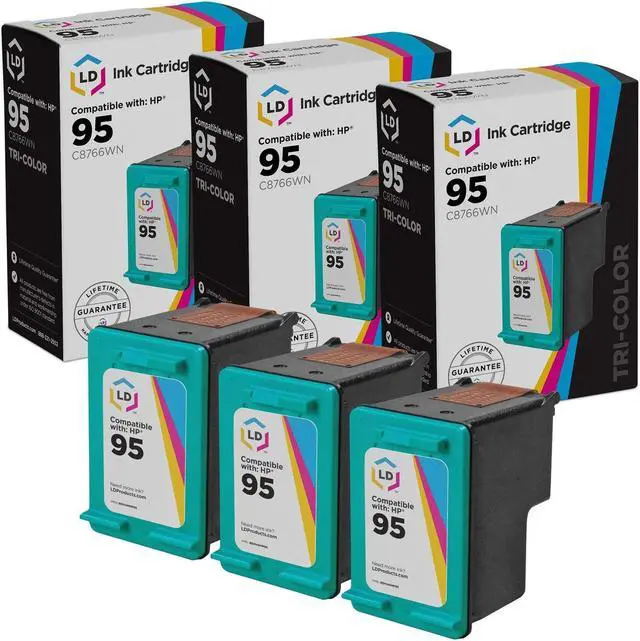 Save even more with our set of 3 HP 95 C8766WN color inkjet cartridges. These LD Products remanufactured ink cartridges have been thoroughly cleaned along with the printhead nozzles. Following the cleaning process, we refilled the cartridge with a professionally manufactured pigment-based ink formula for archival print life and color stability. This ink formula is specially designed to produce vibrant and long-lasting prints comparable to HP. After carefully inspecting the shell for leakage and monitoring the electrical circuitry for efficiency, we put the cartridge through a final print test to be certain it is ready to perform.