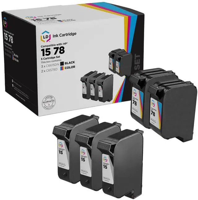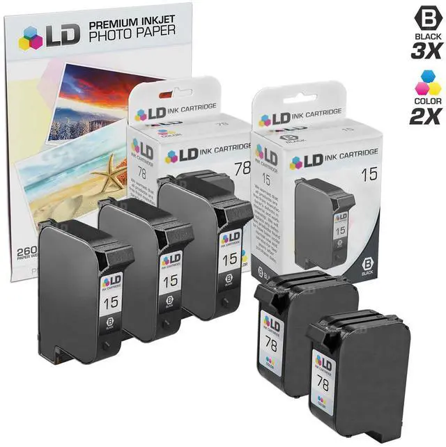 Save even more with our 5 pack remanufactured HP 15 & HP 78 ink cartridges: This bulk set of HP 15 & HP 78 inkjet cartridges include 2 black C6615DN ink cartridges, 3 tri-color C6578DN inkjet cartridges. These LD remanufactured ink cartridges have been thoroughly cleaned along with the printhead nozzles. Following the cleaning process, we refilled the cartridge with a professionally manufactured pigment-based ink formula for archival print life and color stability. This ink formula is specially designed to produce vibrant and long-lasting prints comparable to HP. After carefully inspecting the shell for leakage and monitoring the electrical circuitry for efficiency, we put the cartridge through a final print test to be certain it is worth of our 100% money-back guarantee. Our remanufactured ink cartridges are not remanufactured by HP. So stock up now and save even more! Comes with free a 20-pack of LD brand 4x6 Photo Paper. This combo set works with the following printers: HP OfficeJet 5110, HP OfficeJet 5110xi, 5110v, 5110A2l, HP Deskjet 3820, HP FAX 1230xi, HP PSC 950, HP FAX 1230, HP PSC 950xi, 950vr, HP Deskjet 940C, 940, 920Cvr, 920C, 920, HP PSC 750xi, HP Digital Copier 310, HP OfficeJet V40xi, V40, HP PSC 750, HP Deskjet 940Cvr. We are the exclusive reseller of LD Products brand of high quality printing supplies on Newegg.