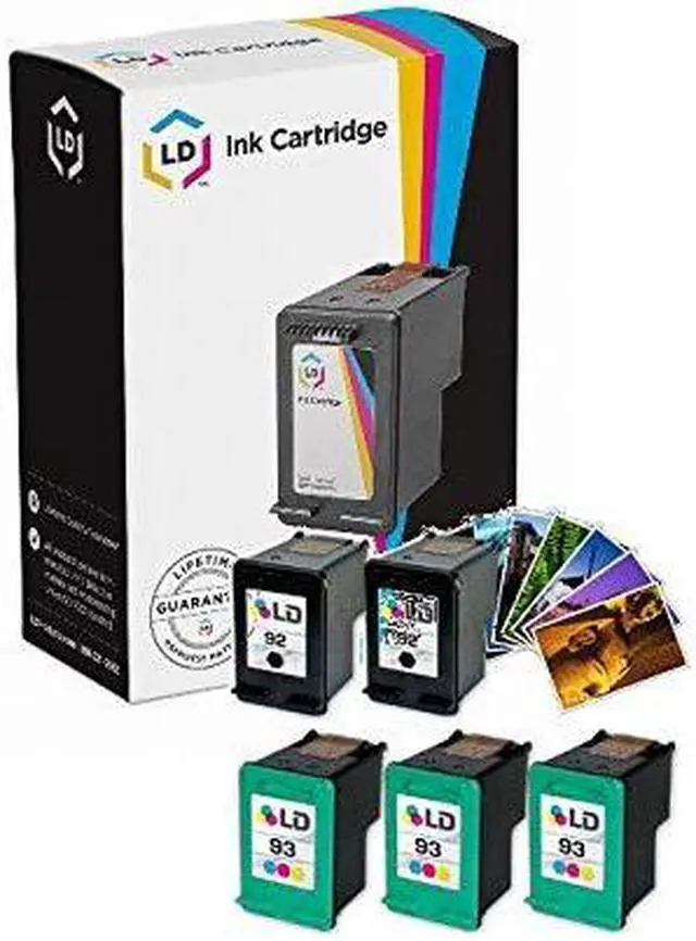 & 93 ink cartridges: This bulk set of HP 92 & 93 inkjet cartridge replacements includes 3 black C9362WN ink cartridges and 2 tri-color C9361WN inkjet cartridges. These LD Products remanufactured ink cartridges have been thoroughly cleaned along with the printhead nozzles. Following the cleaning process, we refilled the cartridge with a professionally manufactured pigment-based ink formula for archival print life and color stability. This ink formula is specially designed to produce vibrant and long-lasting prints comparable to HP. After carefully inspecting the shell for leakage and monitoring the electrical circuitry for efficiency, we put the cartridge through a final print test to be certain it is ready to perform. Our remanufactured ink cartridges are not remanufactured by HP. So stock up now and save even more! This combo set works with the following printers: