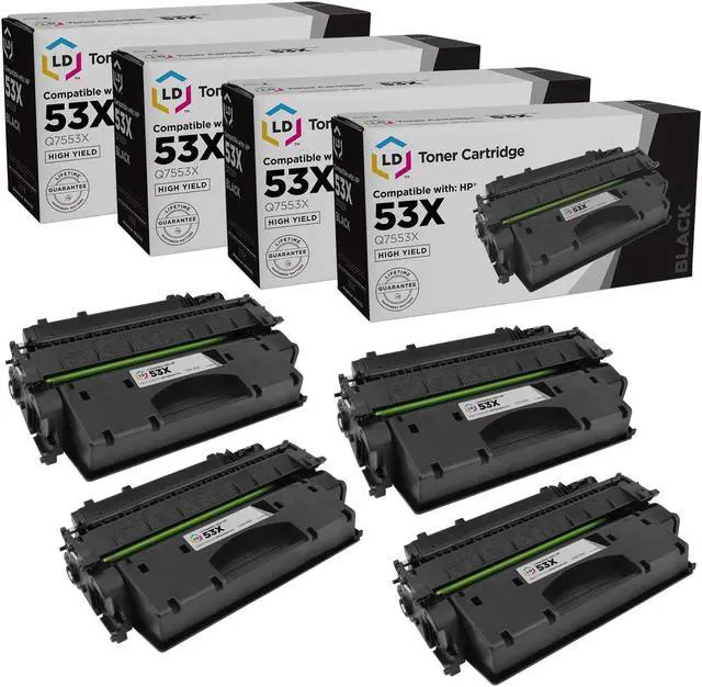 Item Includes: Compatible Toner Cartridge Replacement Compatible with HP 53X Q7553X High Yield (Black, 4-Pack). Why pay more for brand name HP 53A/X cartridge when our Compatible printer supplies deliver excellent quality results for a fraction of the price? This is a remanufactured cartridge and it was not manufactured by HP. This set works in the following HP Printer LaserJet P2015, P2015d, P2015dn, P2015x, M2727 MFP, M2727nf MFP, & M2727nfs MFP. Our cartridges are good for home, office or when you're running a business. Our products are put through a rigorous testing process where they are monitored for quality and reliability. Knowing the toner cartridge that works most efficiently with your printer model is important. Please note, retail packaging may vary and these cartridges will only work with printers purchased within the United States and Canada. The use of compatible cartridges does not void your printers warranty and our cartridges are not manufactured by HP. We are the exclusive reseller of LD Products brand of high-quality printing supplies.