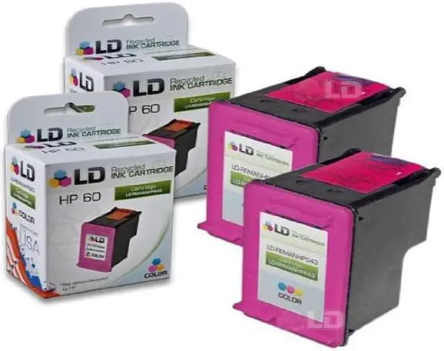 Save even more with our set of 2 HP 60 CC643WN standard yield color inkjet cartridges. These LD remanufactured ink cartridges have been thoroughly cleaned along with the printhead nozzles. Following the cleaning process, we refilled the cartridge with a professionally manufactured pigment-based ink formula for archival print life and color stability. This ink formula is specially designed to produce vibrant and long-lasting prints comparable to HP. After carefully inspecting the shell for leakage and monitoring the electrical circuitry for efficiency, we put the cartridge through a final print test to be certain it is worth of our 100% money-back guarantee. Our remanufactured ink cartridges are not remanufactured by HP. For use in the following printers: PhotoSmart C4680, PhotoSmart C4685, Deskjet F4240, PhotoSmart C4799, Deskjet F4480, Deskjet F4210, Deskjet F4440, Deskjet F4288, Deskjet D2545, PhotoSmart C4780, Deskjet D1660, Deskjet F4283, Deskjet D2568, Deskjet D2530, Deskjet D2560, PhotoSmart C4640, Deskjet D1663, Deskjet D2660, Deskjet F4213, Deskjet F4250, Deskjet F4230, Deskjet F4272, Deskjet D2563, PhotoSmart C4690, Deskjet F4450, PhotoSmart C4795, PhotoSmart C4683, PhotoSmart C4650, Deskjet D2680, Deskjet F4275, Deskjet F4235, Deskjet D2566, Deskjet F4280, PhotoSmart C4635, PhotoSmart C4610, Deskjet D2645, PhotoSmart C4783, PhotoSmart C4750, PhotoSmart C4740, Deskjet F4435, Deskjet D2663, Deskjet F4293, Deskjet F4292, Deskjet F4274, Deskjet F4273, Deskjet F2400, Deskjet F2493, Deskjet F2492, Deskjet F2488, Deskjet F2483, Deskjet F2480, Deskjet F2430, Deskjet F2423, Deskjet F2420, Deskjet F4400, PhotoSmart C4700, PhotoSmart C4600. We are the exclusive reseller of LD Products brand of high quality printing supplies on Newegg.