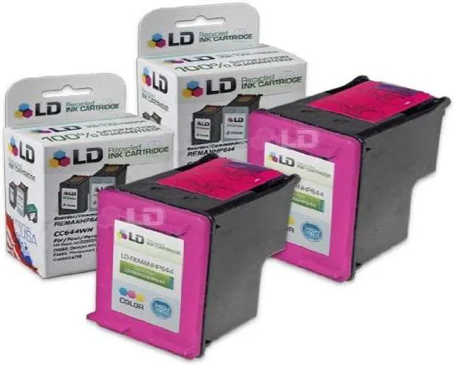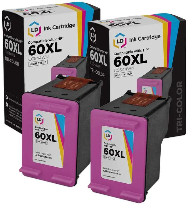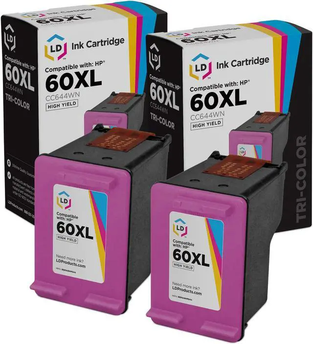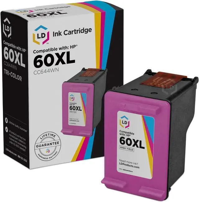 Save even more with our set of 2 HP 60XL CC644WN high yield color inkjet cartridges. These LD remanufactured ink cartridges have been thoroughly cleaned along with the printhead nozzles. Following the cleaning process, we refilled the cartridge with a professionally manufactured pigment-based ink formula for archival print life and color stability. This ink formula is specially designed to produce vibrant and long-lasting prints comparable to HP. After carefully inspecting the shell for leakage and monitoring the electrical circuitry for efficiency, we put the cartridge through a final print test to be certain it is worth of our 100% money-back guarantee. Our remanufactured ink cartridges are not remanufactured by HP. So Stock up now and save even more! For use in the following printers: PhotoSmart C4680, PhotoSmart C4685, Deskjet F4240, PhotoSmart C4799, Deskjet F4480, Deskjet F4210, Deskjet F4440, Deskjet F4288, Deskjet D2545, PhotoSmart C4780, Deskjet D1660, Deskjet F4283, Deskjet D2568, Deskjet D2530, Deskjet D2560, PhotoSmart C4640, Deskjet D1663, Deskjet D2660, Deskjet F4213, Deskjet F4250, Deskjet F4230, Deskjet F4272, Deskjet D2563, PhotoSmart C4690, Deskjet F4450, PhotoSmart C4795, PhotoSmart C4683, PhotoSmart C4650, Deskjet D2680, Deskjet F4275, Deskjet F4235, Deskjet D2566, Deskjet F4280, PhotoSmart C4635, PhotoSmart C4610, Deskjet D2645, PhotoSmart C4783, PhotoSmart C4750, PhotoSmart C4740, Deskjet F4435, Deskjet D2663, Deskjet F4293, Deskjet F4292, Deskjet F4274, Deskjet F4273, Deskjet F2400, Deskjet F2493, Deskjet F2492, Deskjet F2488, Deskjet F2483, Deskjet F2480, Deskjet F2430, Deskjet F2423, Deskjet F2420, Deskjet F4400, PhotoSmart C4700, PhotoSmart C4600. We are the exclusive reseller of LD Products brand of high quality printing supplies on Newegg.